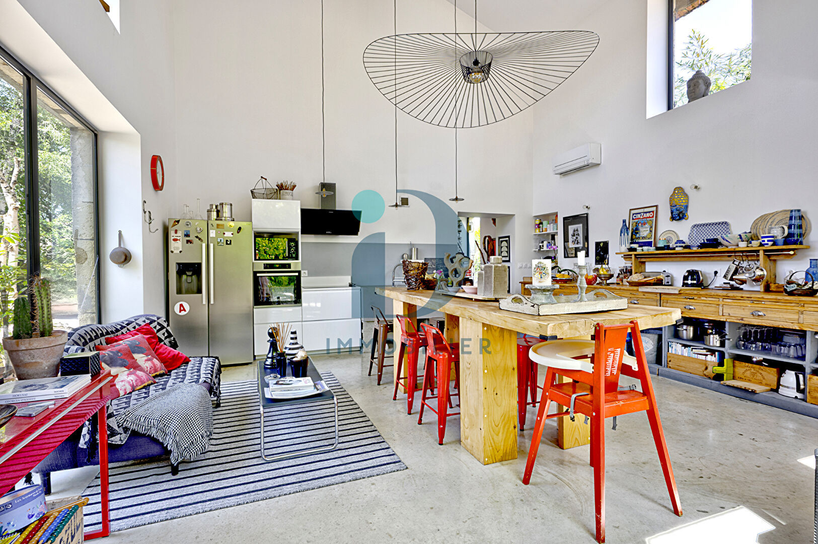 ? Cuisine avec hauteur sous plafond spectaculaire, véritable coeur de la maison, pensée comme un lieu d’échange