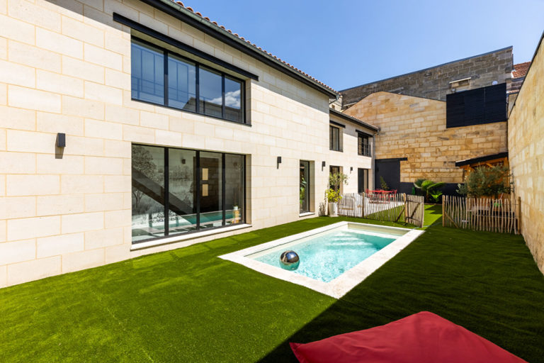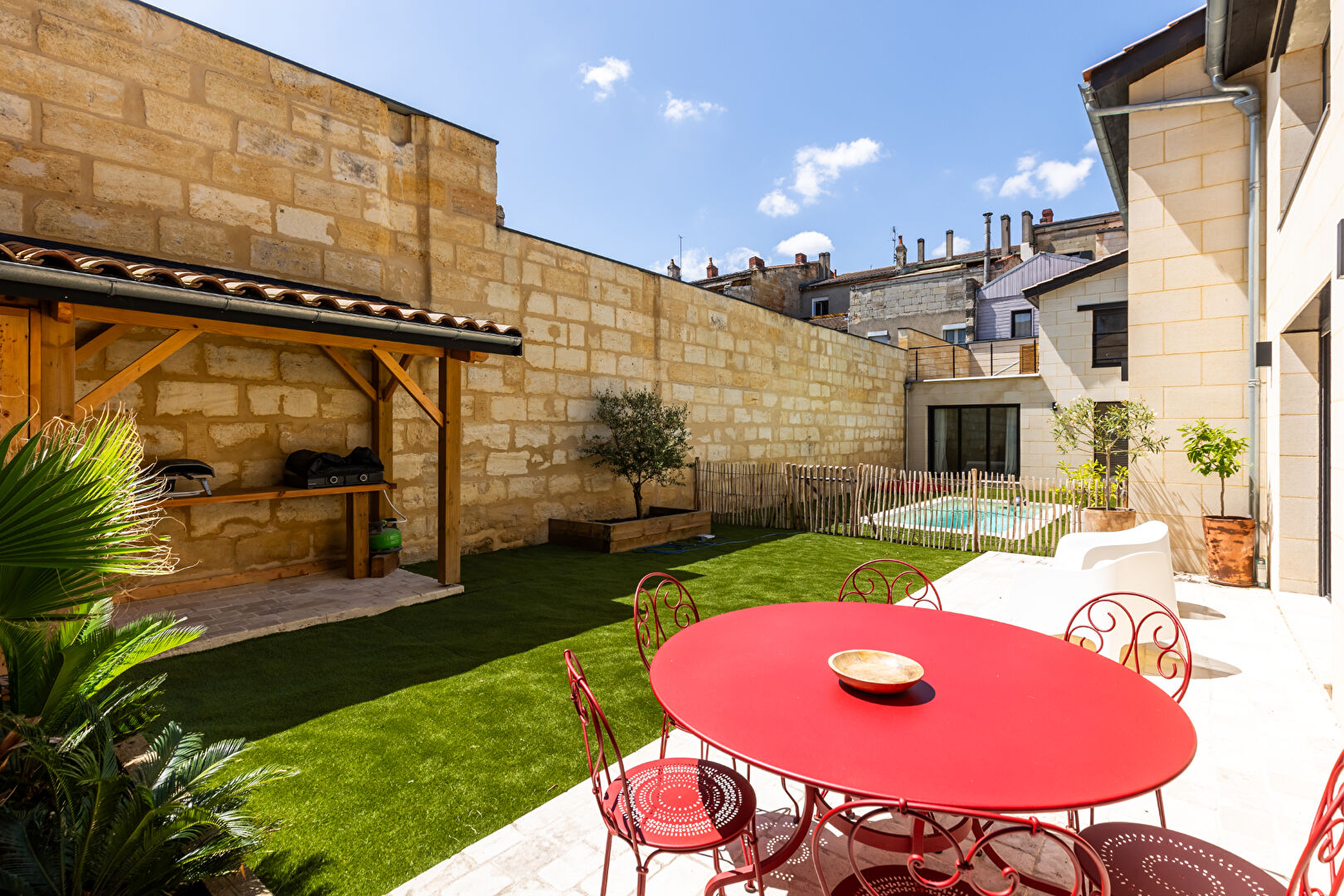SOUS OFFRE Située dans le quartier recherché de Bordeaux Bastide, à deux pas des écoles, agréable maison en pierre d’environ 250 m2 au sol avec terrasse, jardin, piscine et deux places de parking.