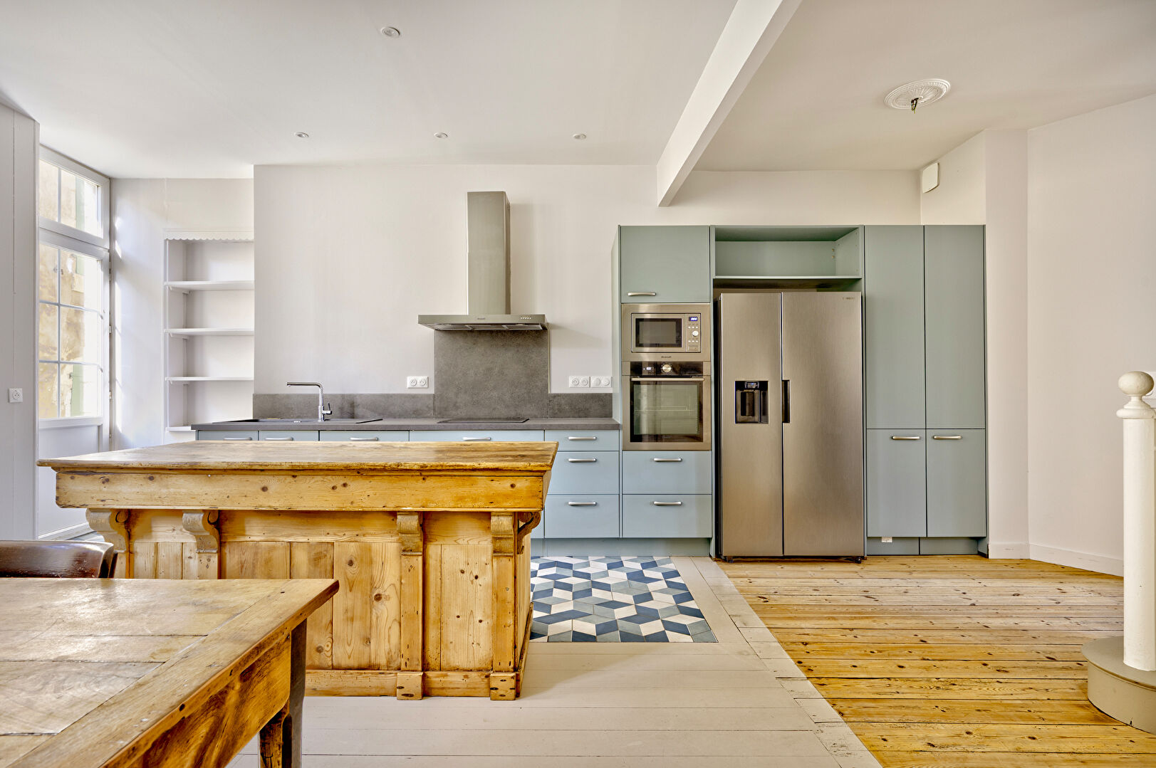 Séjour lumineux mêlant authenticité et modernité