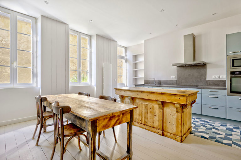 Cuisine aménagée et équipée ouverte sur un espace convivial