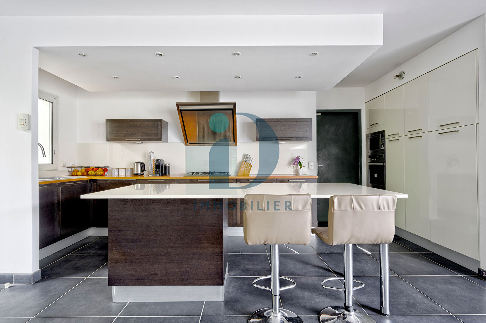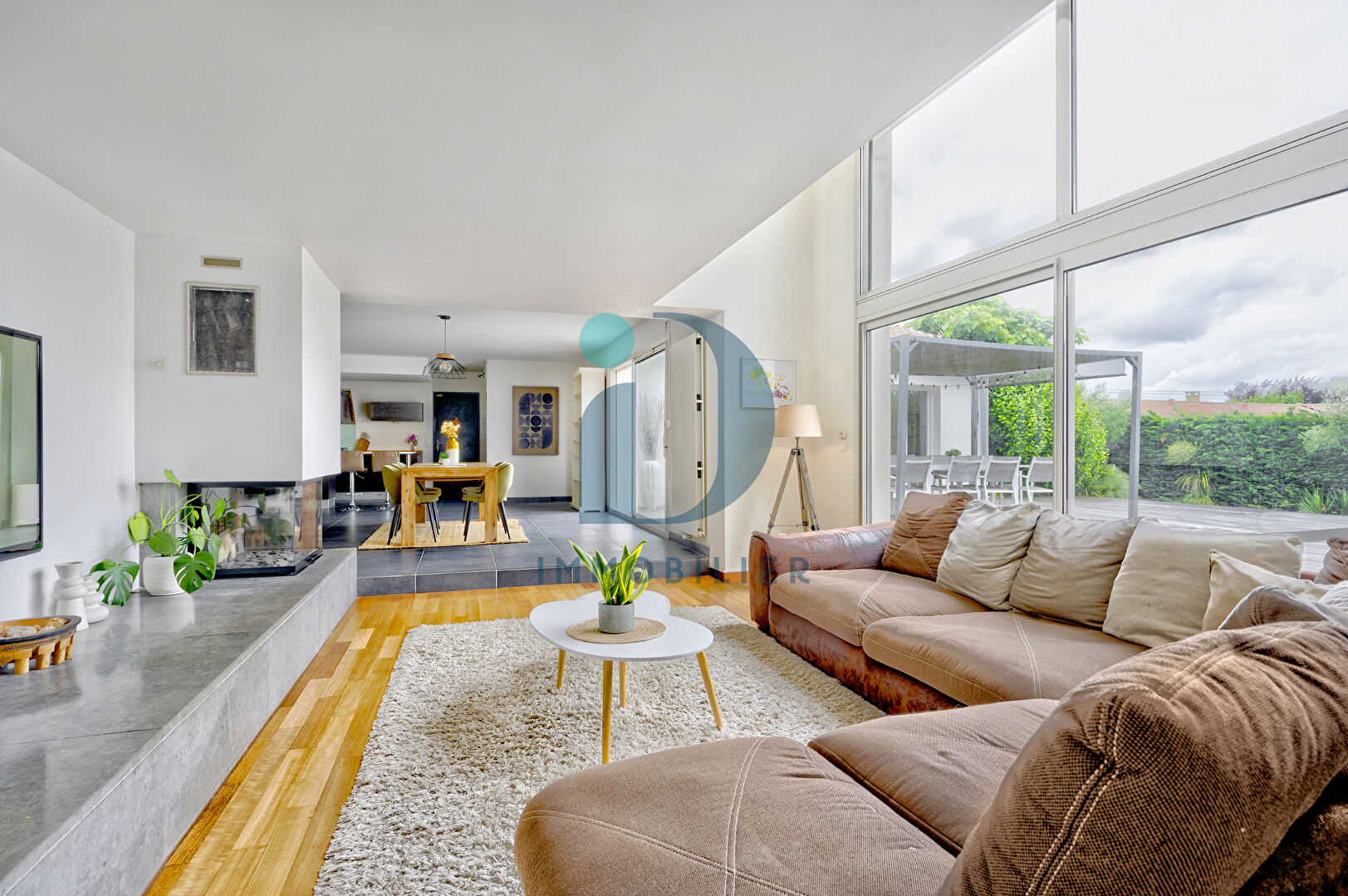 Dès l’entrée, vous serez séduit par un vaste espace de vie (salon, séjour et cuisine aménagée et équipée) baigné de lumière, avec cheminée, ouvert sur une grande terrasse idéalement orientée et un jardin sans vis-à-vis.