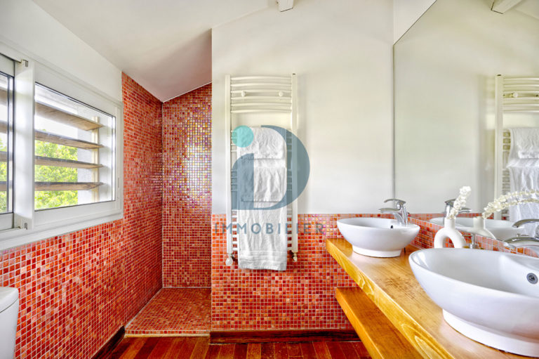 La maison dispose de 5 chambres, dont une spacieuse suite parentale avec salle d’eau privative et vue imprenable sur le jardin et la piscine, une seconde chambre avec salle d’eau attenante, ainsi qu’un espace nuit dédié aux enfants, pour préserver l’intimité de chacun. L’agencement permet de concilier vie familiale et espace personnel.